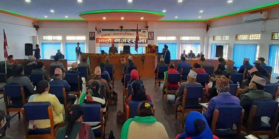 इलाम । इलाम नगरपालिकाको आठौं नगरसभाले दुई विधेयक र एउटा विषेश प्रस्ताव पारित गरेको छ । आईतबार बसेको नगरसभाले ‘इलाम नगर प्रहरी ऐन २०७५’ लाई संशोधन गर्न बनेको विधेयक सभाबाट सर्वसम्मत रुपमा पारित भएको छ ।