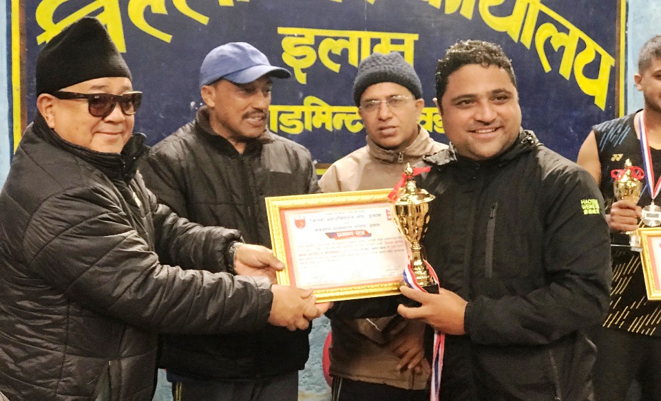 इलाममा आयोजित ब्याटमिन्टन प्रतियोगिताको पुरस्कार वितरण गर्दै इलाम नगरपालिकाका प्रमुख महेश बस्नेतले नगरले खेलकुदलाई उच्च प्राथमिकतामा राखेर काम गरिरहेको बताएका छन् ।