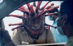 भारतमा भीडभाड रोक्न प्रहरीलाई ‘कोरोना हेल्मेट’